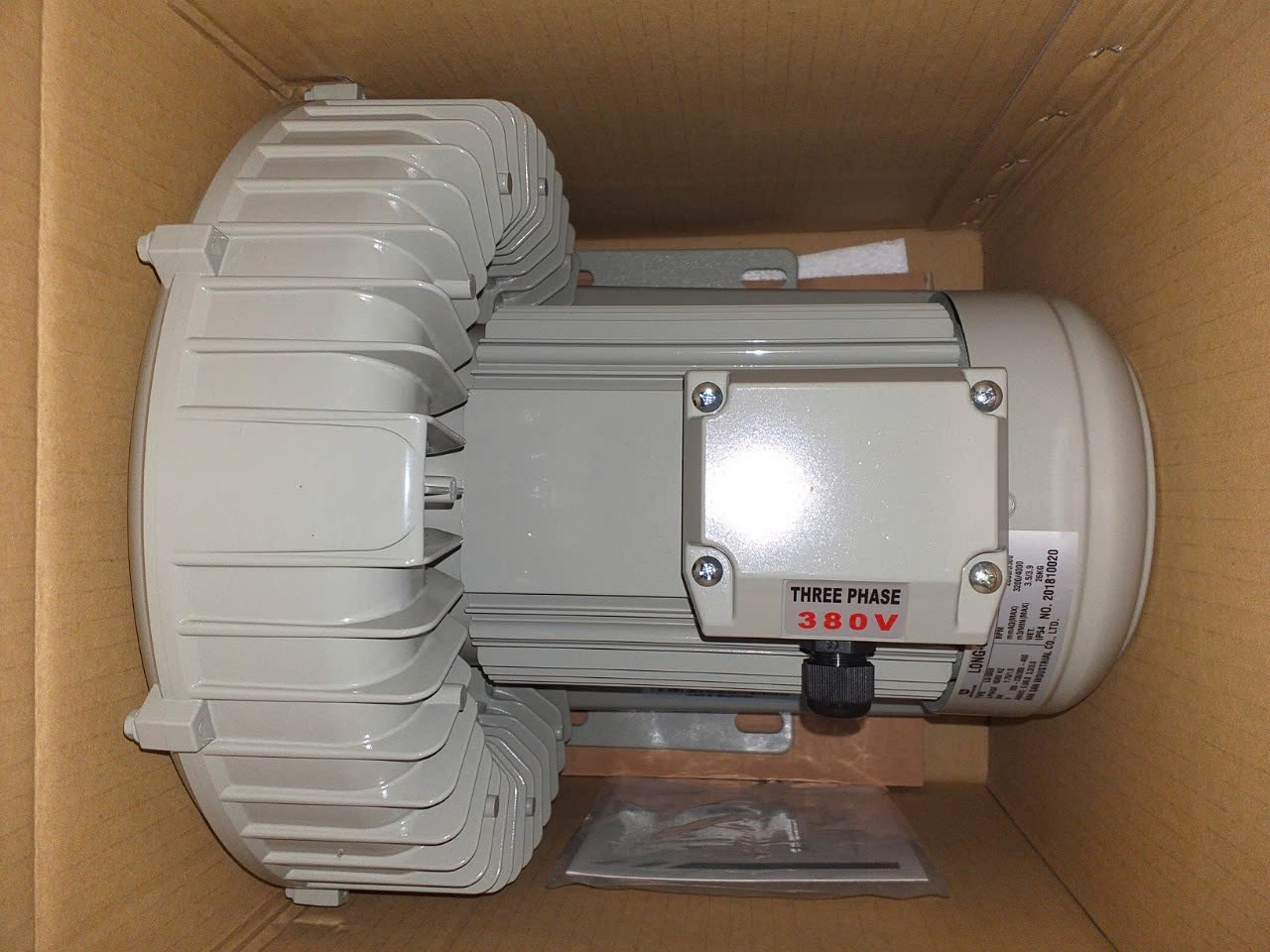 | Pha | Model | Công suất (KW) | 220/380 | Áp thổi max (mmAq) | Áp hút Max (mmAq) | Lưu lượng max (m³ / phút) | Độ ồn (dB) | In / Out (inch) | Trọng lượng (kg) | Kích thước (mm) |